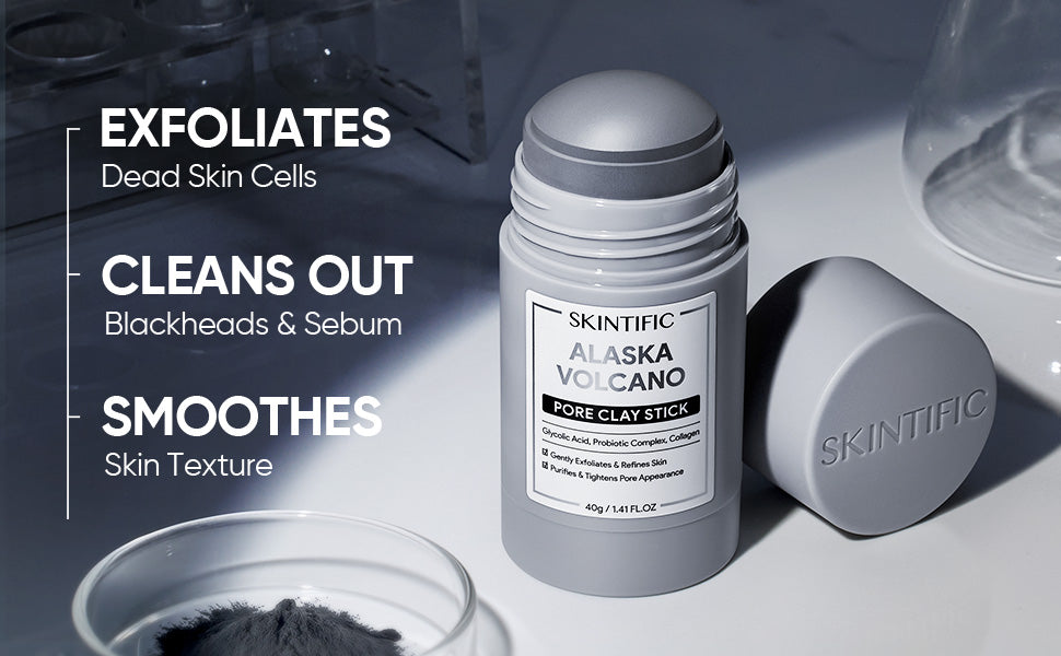 Gently exfoliates and detoxifies pores with natural Alaska Volcano Clay, leaving skin fresh and purified.