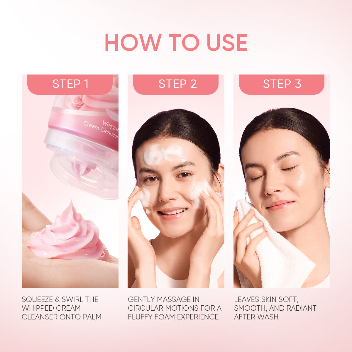 • Dessert-inspired whipped cleanser with a soft, springy texture!